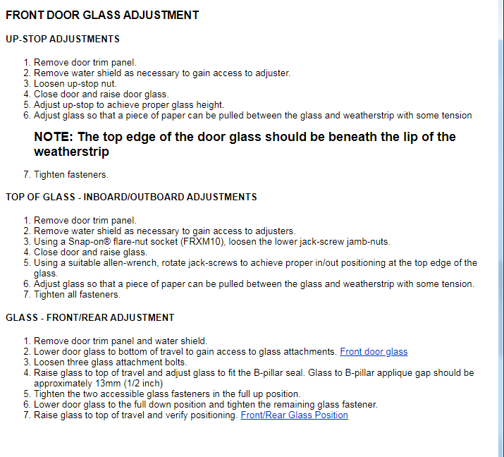 I just replaced the driver side glass window, but it's not properly aligned, when closed it leaves a gap at the top near the door center post.
