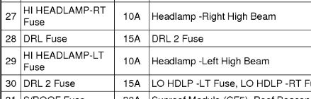 Next, there are two different fuses for the left front headlight. One is for high beam and the other is the low beam. If you look at picture 1, it shows fuse 10 in the under hood fuse box as the left low beam. Picture 2 shows the high beam fuse for the same light.