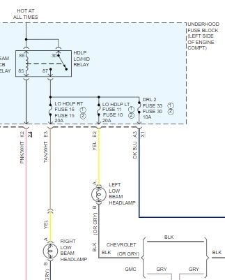 I had a bad connection on the driver side headlight so i was on the process of installing new pigtails when the red wire hit my bumper and now my driver side headlight and taillight do not work. I have checked what i think the manual is telling me the fuse and relay are. can someone confirm the relay and the fuse location please? i have checked both fuse boxes but not all fuses.