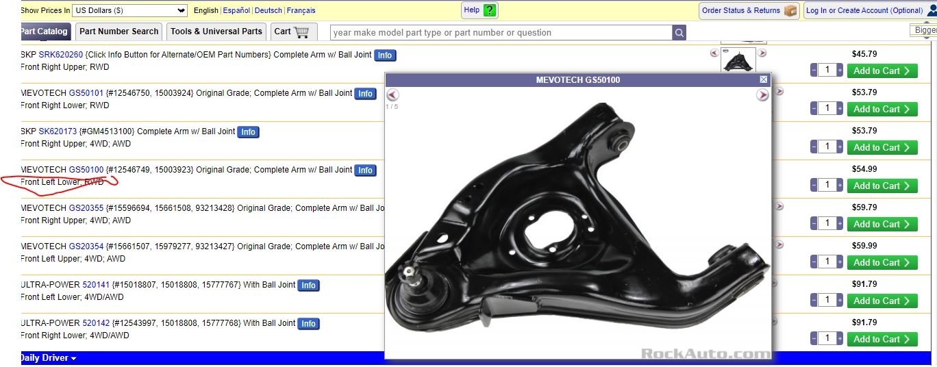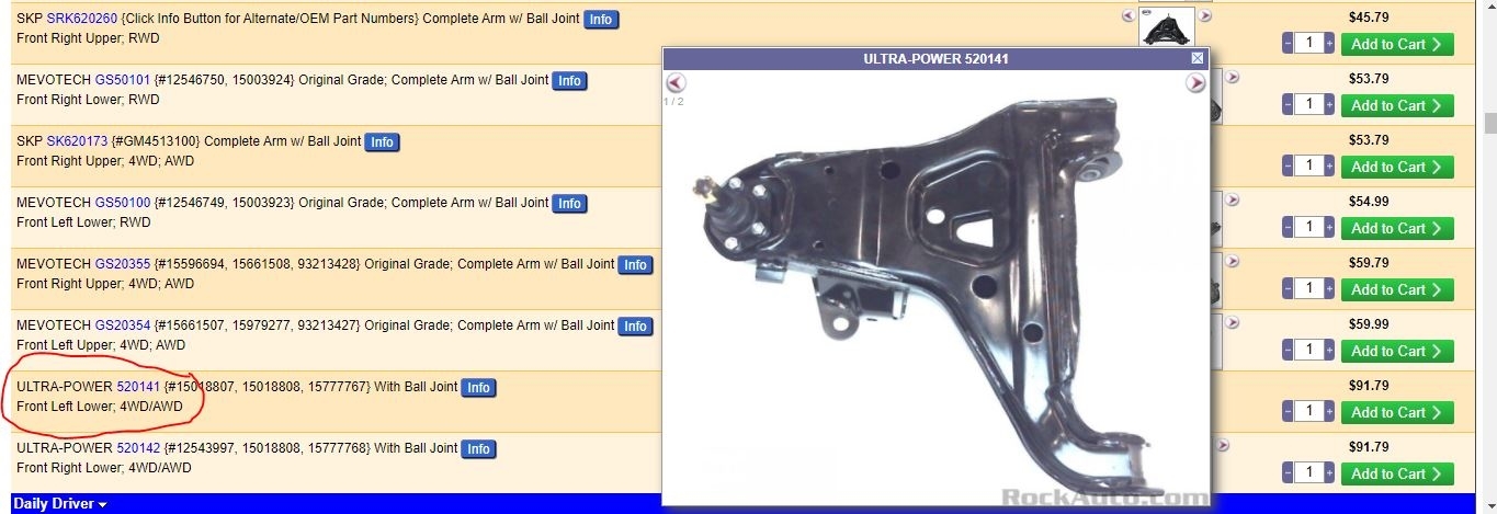 I damaged my control arm on my vehicle listed above. my question is, do you know if the parts off a 2WD Blazer interchange to fix my my control arm?