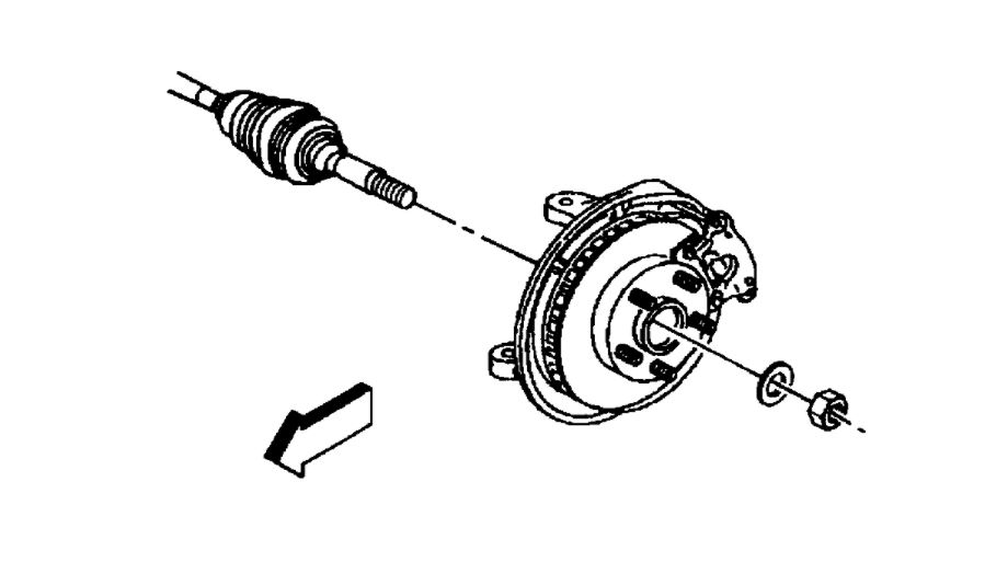 5. Disengage the wheel driveshaft from the wheel hub and bearing assembly. Place a brass drift against the outer end of the wheel driveshaft in order to protect the wheel driveshaft threads. Sharply strike the brass drift with a hammer. Do not attempt to remove the wheel driveshaft from the wheel hub and bearing assembly at this time.