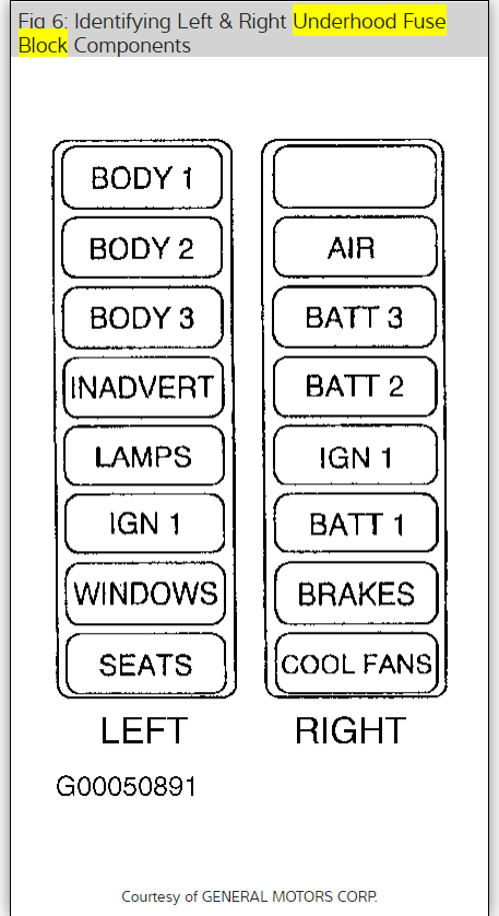 There is a 50 amp maxi fuse (#7 in 2nd diagram) which powers both fans on two different circuits. This fuse is located in the engine compartment and neither fan would run if this fuse was blown. You can easily check each fan for power with a test light. Right fan has power on light blue wire and Left fan has power on black wire.