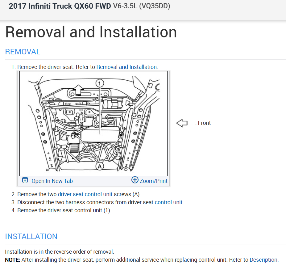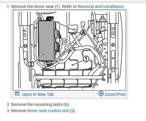 In order to check the control module for seat climate control, I will need to remove the seat. Do you have any instructions on driver seat removal or a way to check and if necessary, swap out the module?