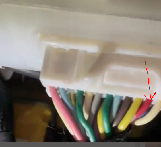 I copied from your video a pic. I have an arrow pointing to the red wire in question. Check to see if there is power present.