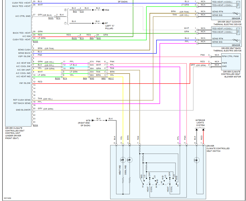 Is my seat heated by the gentherm with blown air or are there wires in the cushions? No wiring diagrams show wires to cushion or seat back only to TED seat and TED cushion. Are both Ted’s in the same module under the seat. So how do I test if Ted is bad vs climate control module? Are both passenger and driver the same?