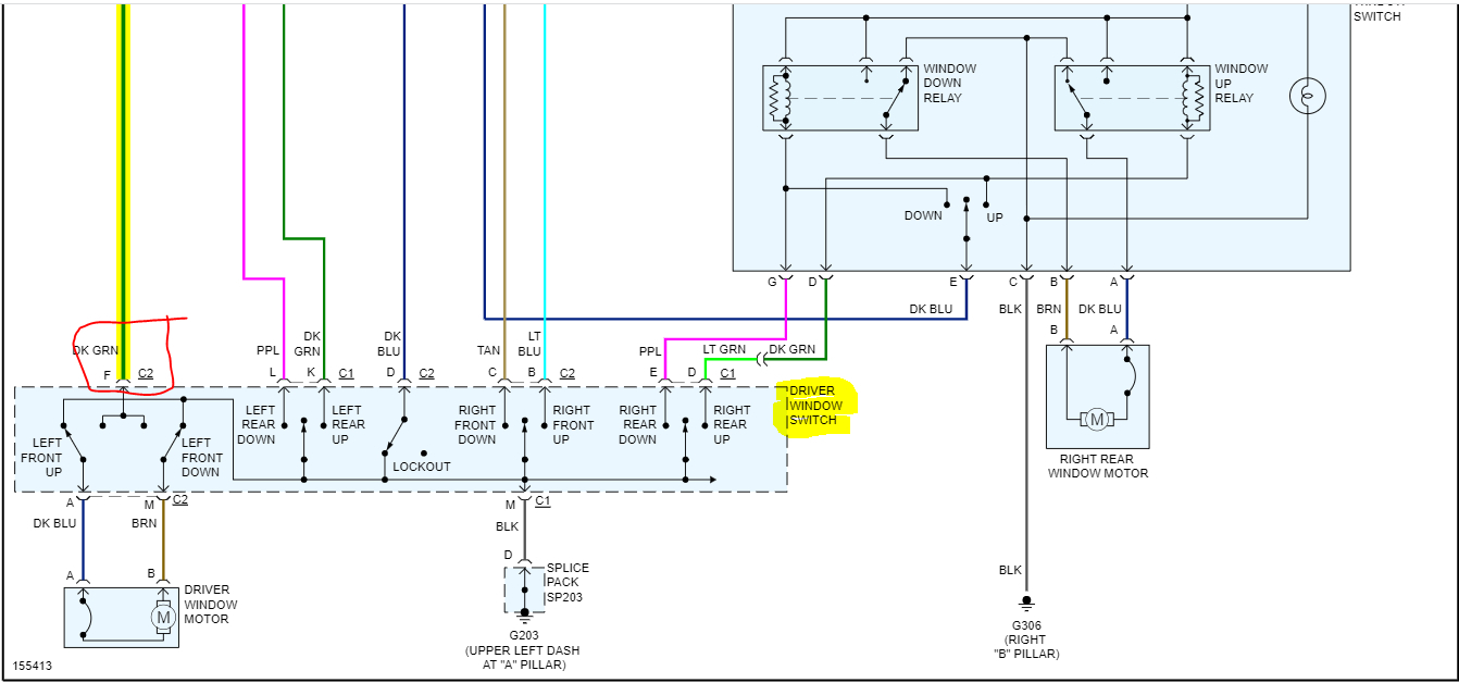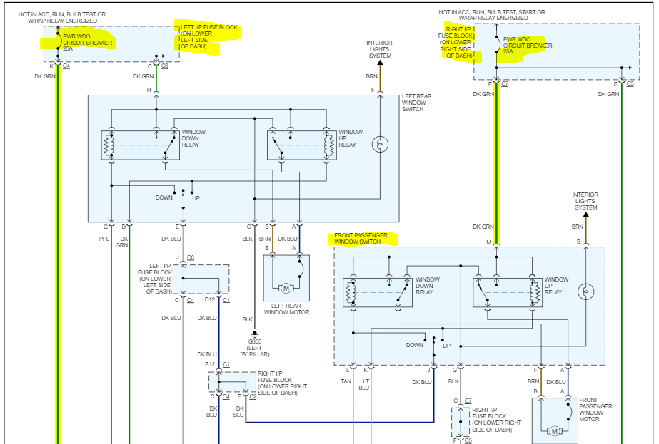 I put a new switch in driver side window. Switch is good so is fuses, relays, and circuit breaker. I test it for power when I probe the ground in the plug I have no power, I ground my tester to the vehicle and probe for power I have power. It's only doing it on the front windows. I probe the back windows switch and I have power. So, I'm sure I have a bad ground wire. Where would I check the other end of the ground?