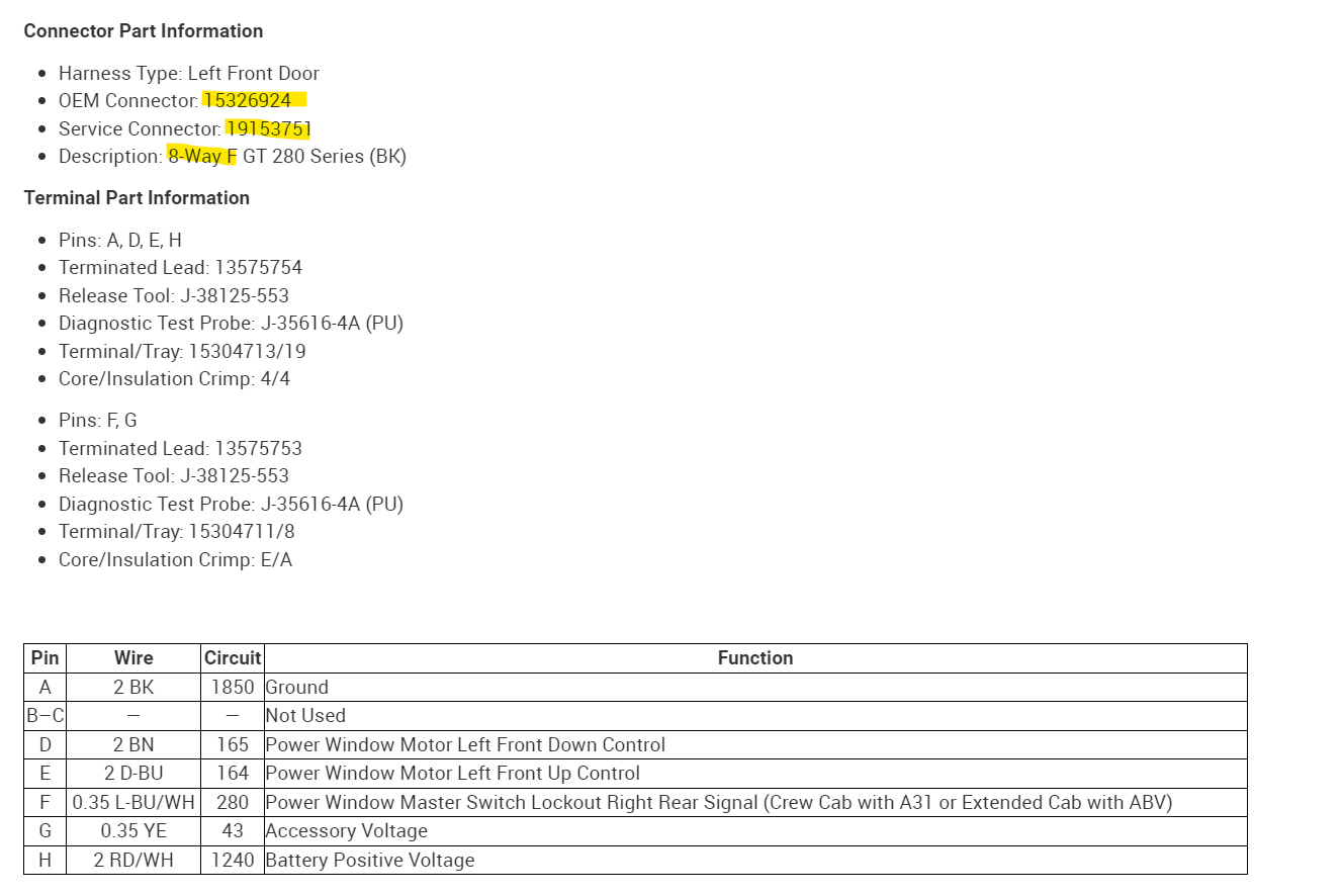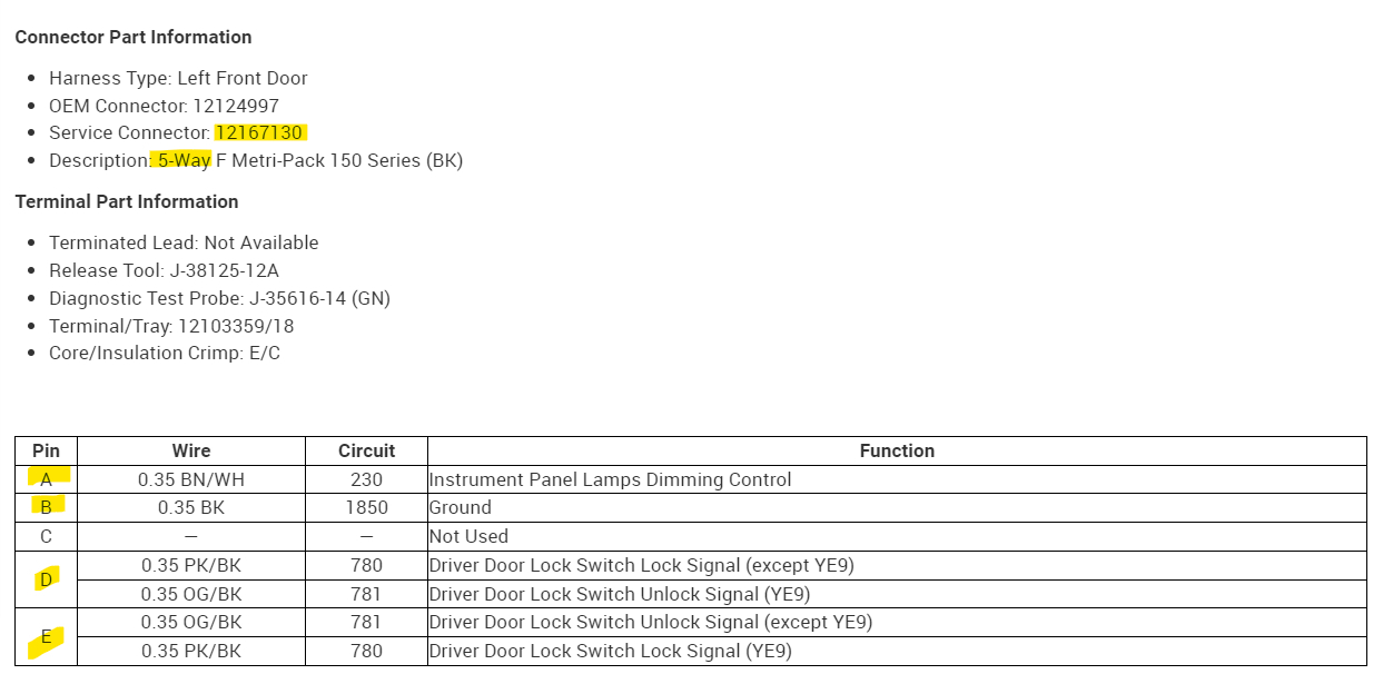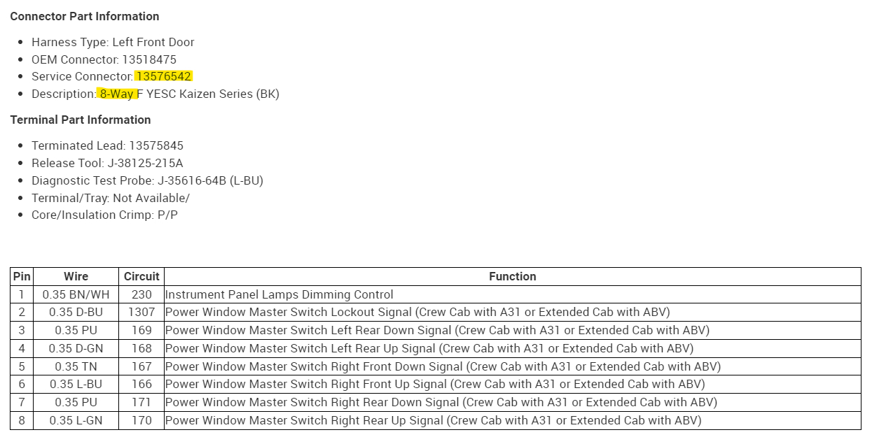 Someone stole my front driver side switch assembly for the mirror, windows and door lock and cut the pigtails off. I was able to find replacement parts, but all switch pigtails have only white wires…