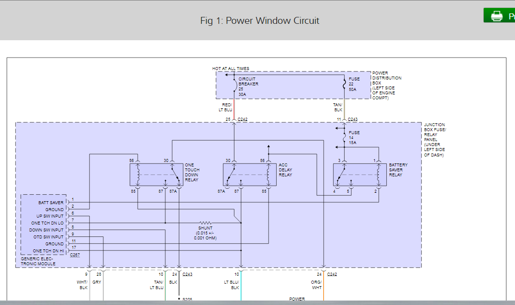 My driver side window wont go down most times but last night I left my ignition forward by mistake and when I went out this morning the battery was dead and the window was down. It will go back up but not down. Is this a relay problem? If so what relay do I replace?I first thought it was a switch and replaced that a couple weeks ago and still had the same problem so it shouldn't be the switch. Also I can hear my engine lag a little (while it is running) when I push the window button up but not when I push it down.