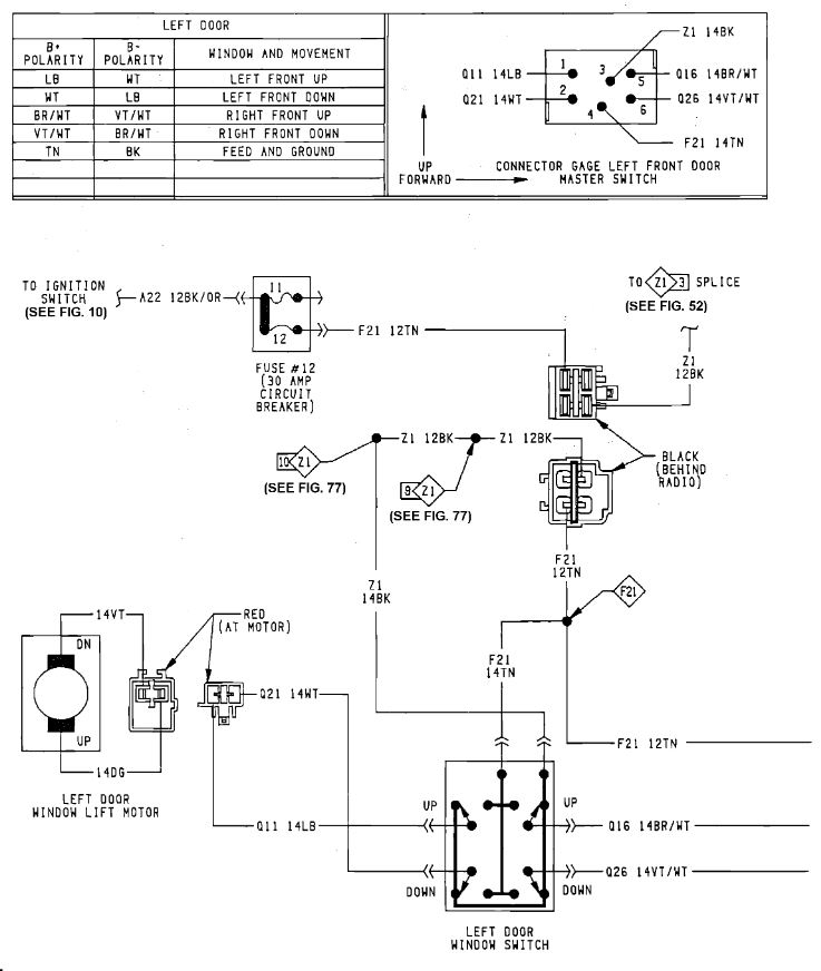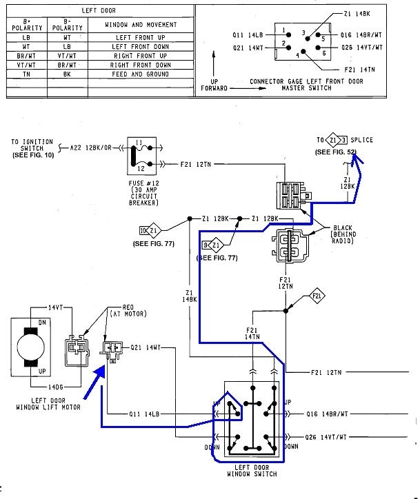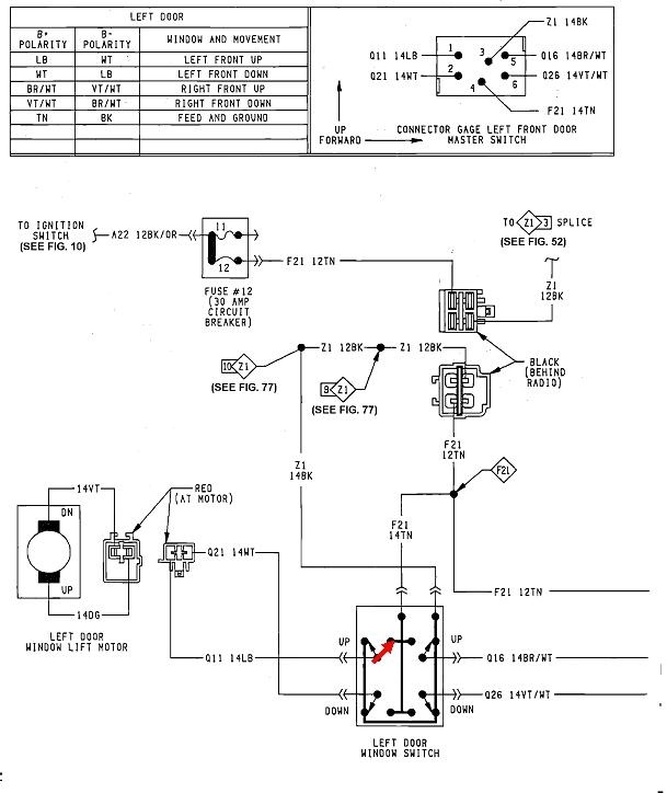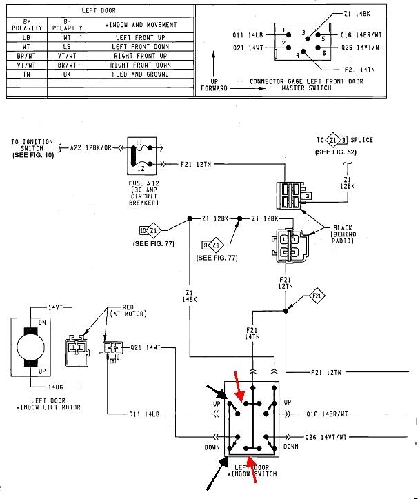 In the fourth diagram, I just blanked out the part of the driver's switch that is for the passenger window, to lessen the confusion. What's left on the left side of the switch assembly is all for the driver's window.