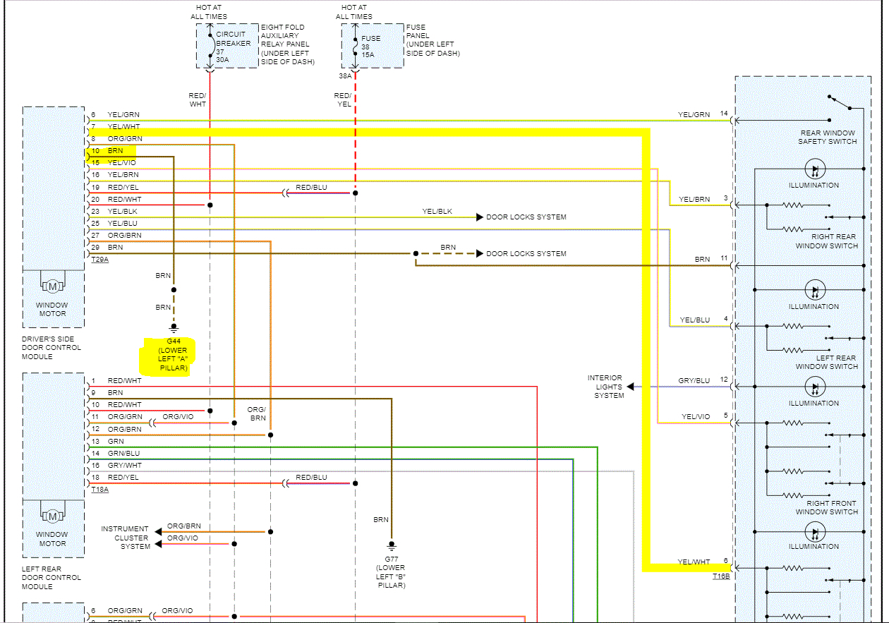 I sold the car to this guy, he tore it half apart, really messed things up. Anyway, I need to power the driver's door window up without the door switch, which didn't do the trick, anyway. The window motors on these have about a dozen wires going into the rear of them. (Not the usual two wire kind.) Any idea which wires I could connect power and ground to just to raise the window, for now. It's raining like crazy here in the Pac NW.