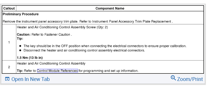If the HVAC manual or HVAC automatic control modules are replaced, an automatic re-calibration of all the actuators will occur. Be sure to check Service Programming System (SPS) (See: Vehicle > Programming and Relearning > Service Programming System (SPS)) for the latest calibration software. For the best re-calibration results, start and run the engine for at least one minute after installing the new module. Do not adjust any controls on the HVAC control module during the re-calibration procedure. If interrupted, improper HVAC performance may result. No additional procedures are necessary.