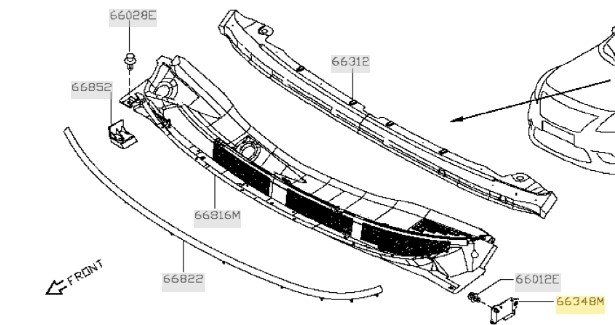 Then there should be 5 other clips that hold the cowl in place. The part number for those is: 66820-2DV0A