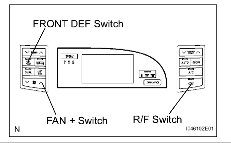 a Turn the ignition switch on (IG) while pressing the FRONT DEF switch and FAN+ switch simultaneously.