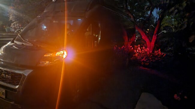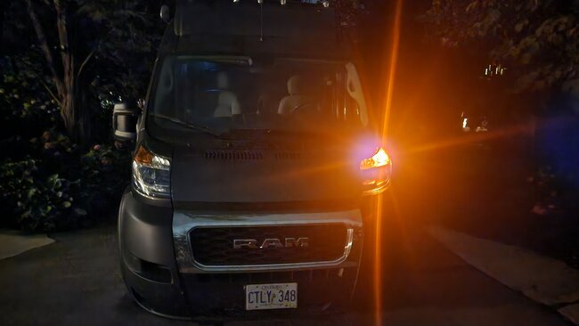 The parking lights on the driver's side have come on and will not turn off: The van has been driven regularly, and had been sitting for a few days in our driveway after returning from a multi-day trip. No issues. Last night, we noticed a faint glow from the driver's side, and discovered that both the front and rear parking lights were illuminated. This was not present the night before. We tried starting the van, checking all switches, moving it, but no change. This morning, the lights are still illuminated.