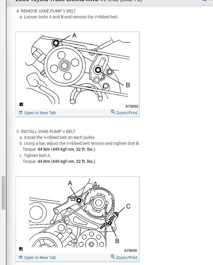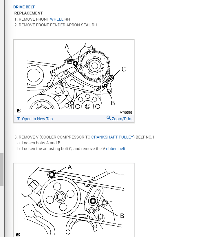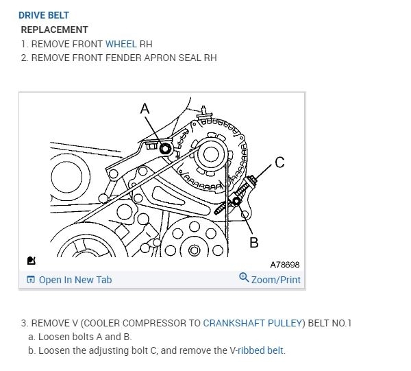 Take a look below for this info that shows how to remove each belt. There is an adjuster on the alternator and a second on next to the power steering pump.