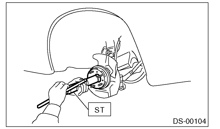11) Remove the front drive shaft assembly from hub. If it is hard to remove, use the STs.
