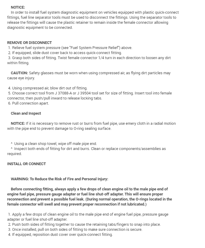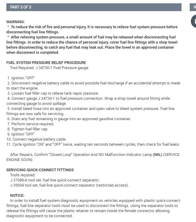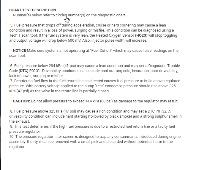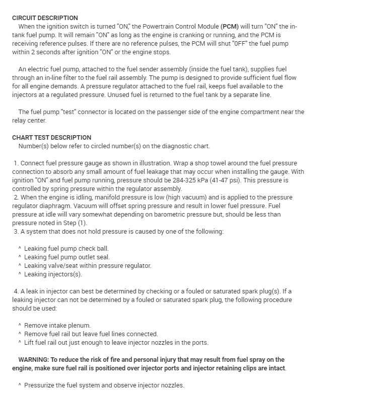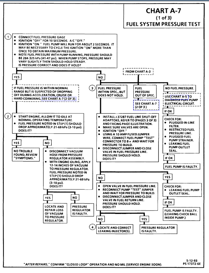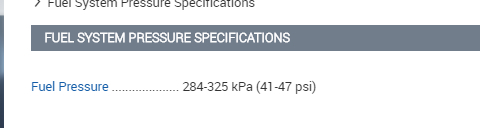 FUEL SYSTEM PRESSURE SPECIFICATIONS