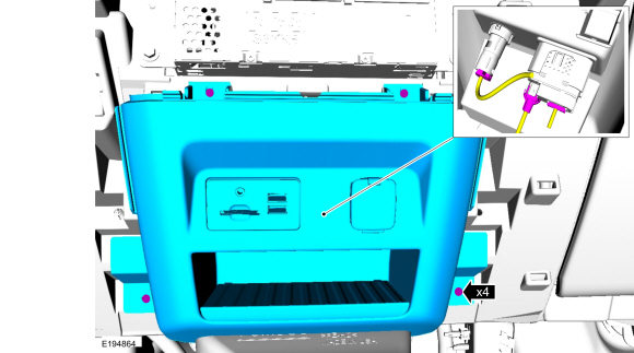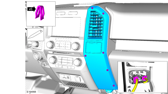 Release the clips and remove the RH instrument panel center trim panel.