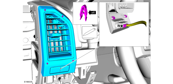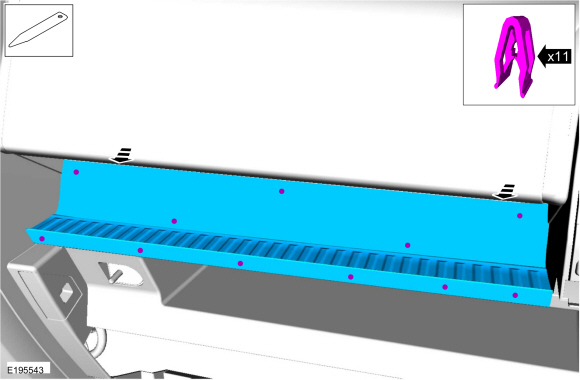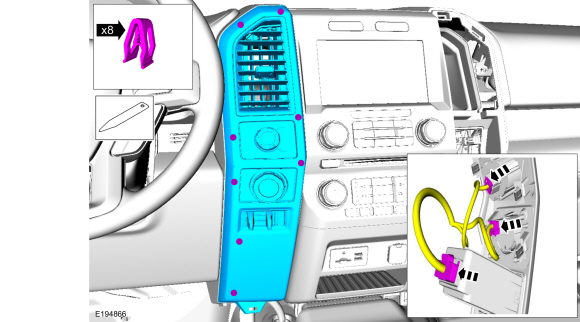 Release the clips and remove the LH instrument panel center trim panel.