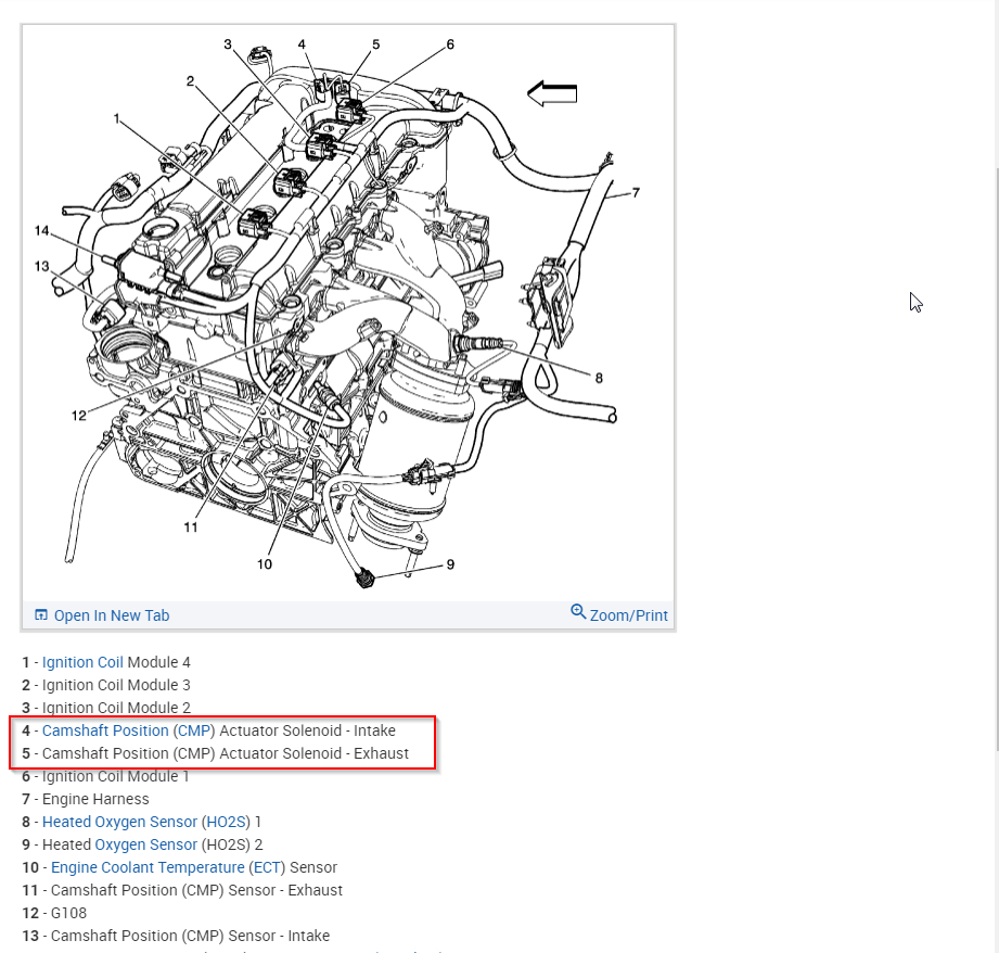 The cam sensors are on the same side of the engine. Take a look at the diagram. Looks like you got number 11 and now need to get number 13. I thought prior that you were talking about the actuators which are on the other side of the engine. The diagram shows each of them for you to find them.