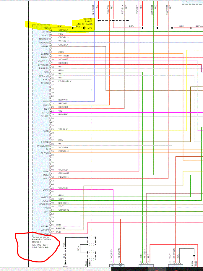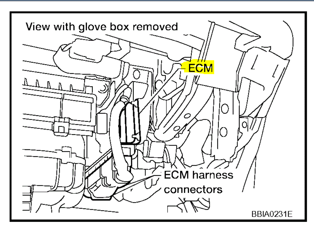 The ECM is behind the glove box. See picture 1. If you look at pic 2, I attached a pinout of the ECM and highlighted the ground and location. It is a black wire which is grounded behind the right side of the dash.
