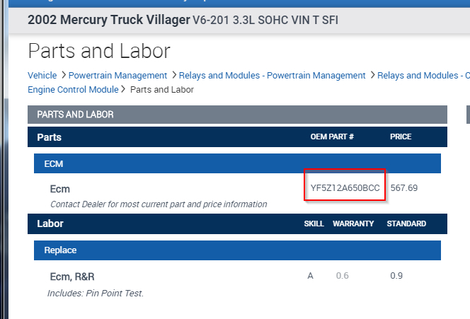 Any time there is a discontinued part we need to relay on the aftermarket or a refurbish company. If you simply do an internet search for "2002 Mercury Villager ECM" then you will find companies that will refurbish your ECM or send you one that is refurbished and will want you to send yours so they can fix it and sell it to someone else.