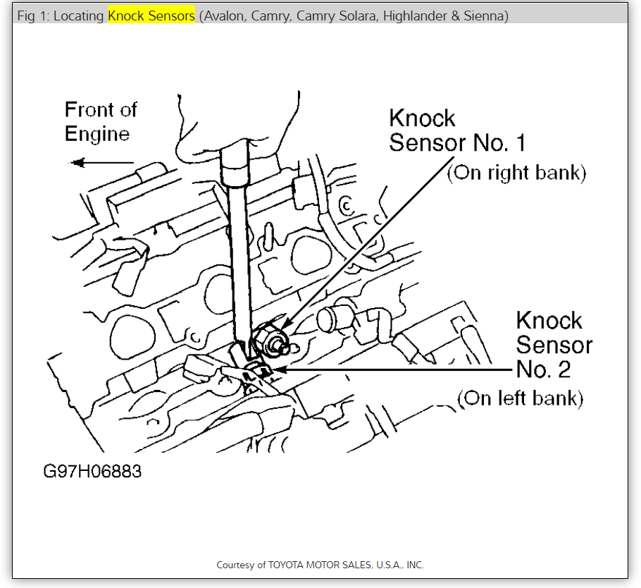 It sounds like the sensor is out. Here are the complete engine wiring diagrams so you can see how the system works and the location of the knock sensor under the intake manifold: