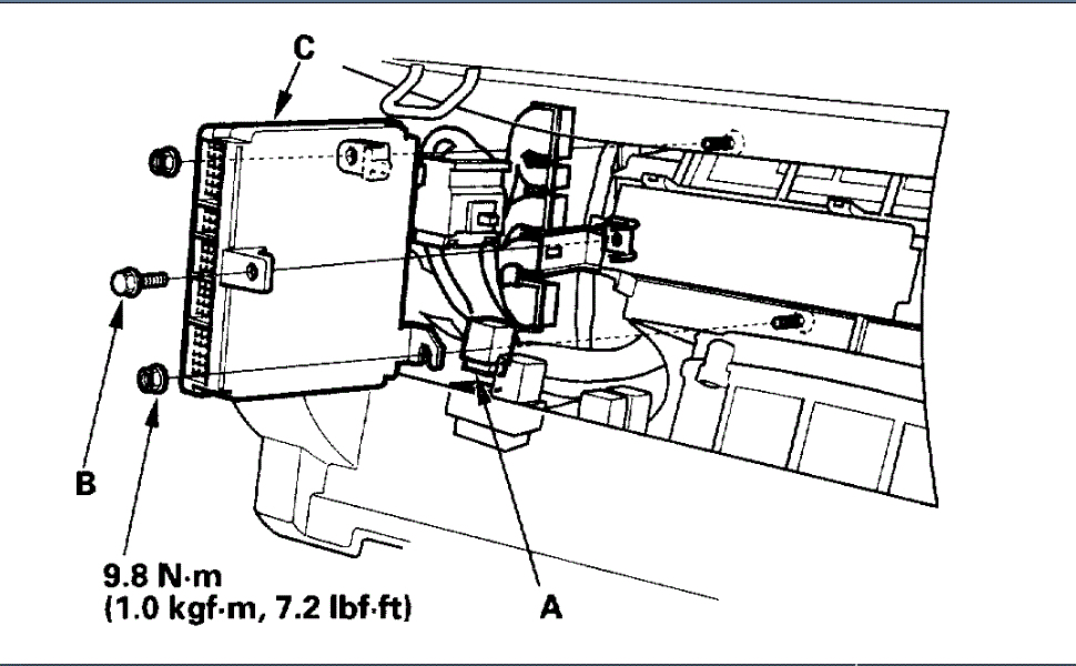 3. Remove the nuts, then remove the ECM/PCM (C).