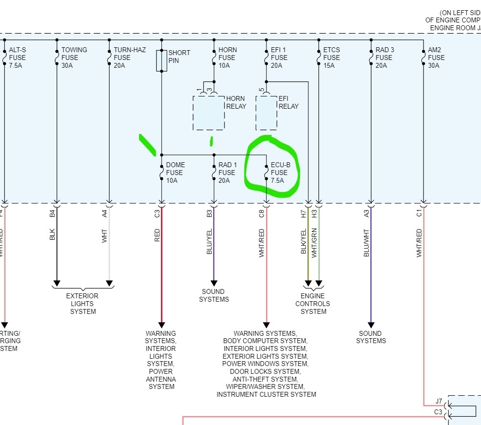 All the other fuses have power. Fuse #22 ECU-B only has power on one side.