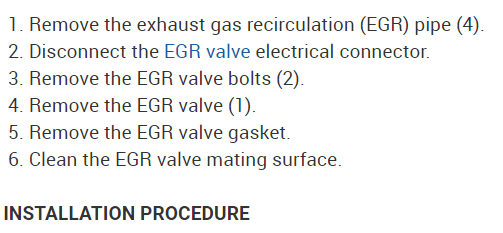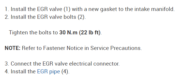 Did you use new gaskets and tighten the bolts to the proper torque on the EGR valve? I've attached picture replacement steps below. Hope this helps and thanks for using 2CarPros.