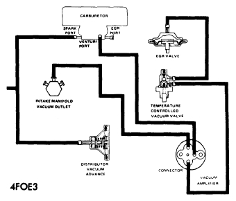 I examined my carburetor and saw the EGR Valve, missing a hose. The little tube that would go somewhere, but I am unsure of where. In the picture you can see that it could go in that manifold to the right that has two tubes.