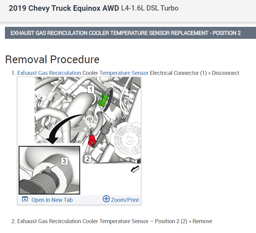I am confused. I wasn't able to do the temperature sensors as I couldn't locate them. Can you send me pics from beginning to end on how to remove and replace the EGR temp sensors 1 and 2 on a 2019 Diesel Chevrolet Equinox.
