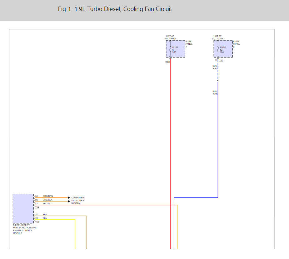 There is a sensor in the lower corner of the radiator that sounds like it has gone bad. here is the cooling fan wiring diagrams so you can see how the system works. Check out the diagrams (below). Please let us know what you find. We are interested to see what it is.