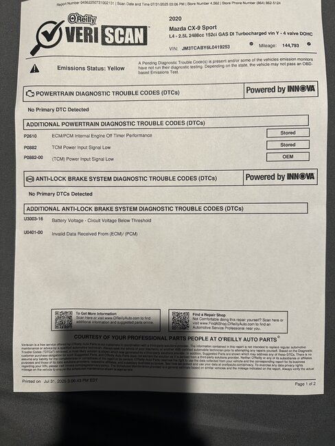 Thanks for getting back to me. I actually did take my car to o’Reilly auto parts and they did a test. I have attached below what the test showed. Thanks so much for being willing to help me because I have no idea. lol