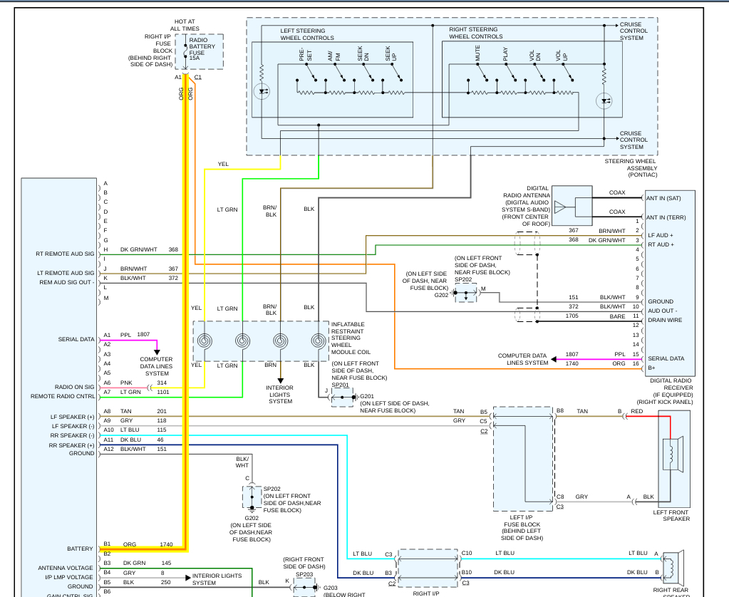 Okay, now that you have told me that, let's go about this differently. This definitely sounds like a problem with your vehicle's Body Control Module[BCM]. Let's start by checking the BCM ground, Ground 202 which is on the left side of the dash by the fuse block. Make sure that it is clean, tight, corrosion free, and making good metal to metal contact. In the diagrams down below I have included a diagram of the location of the BCM, and the BCM wiring diagrams for you for reference. Please start by checking ground 202 and getting back to us with what you find out.