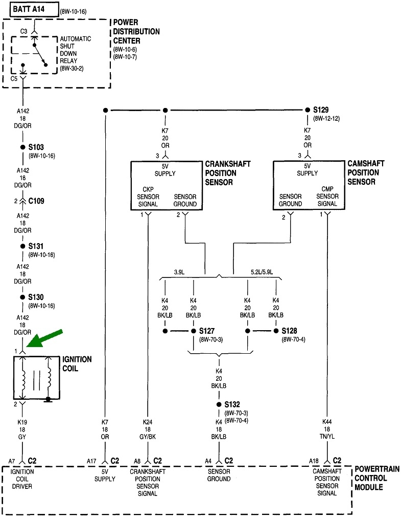 If you find a fault code related to the crankshaft position sensor or the camshaft position sensor, we need to look there first. Otherwise, the place to start is by determining if the automatic shutdown, (ASD) relay is turning on. A test light works best for this, but you can use a digital voltmeter too. Here's links to some related articles, if it will help: