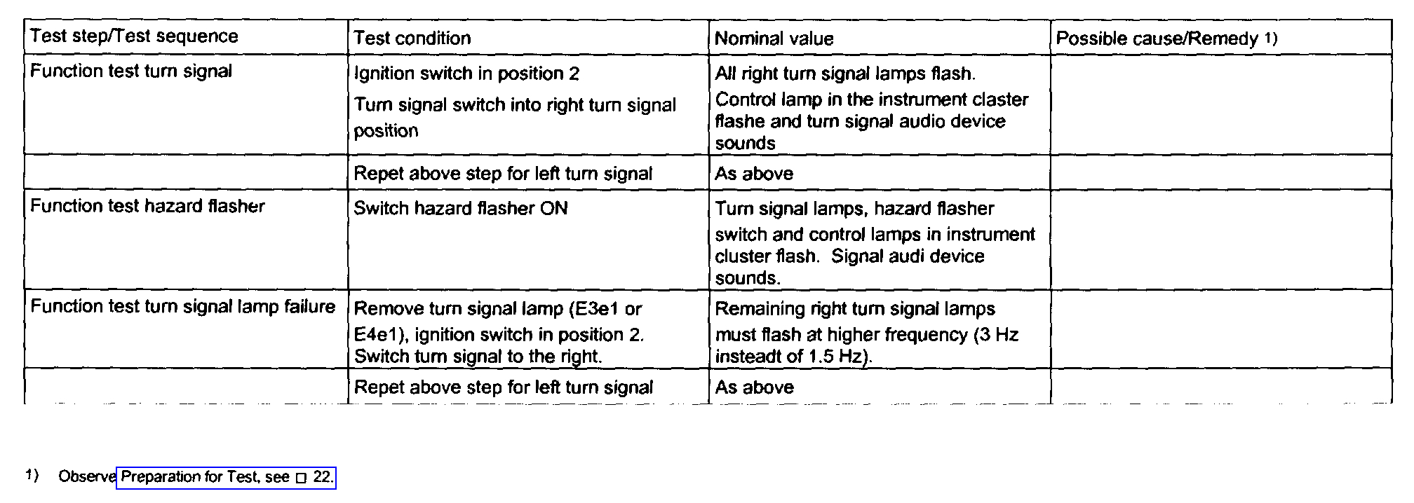 Turn signals function can be checked using HHT. Turn signals function test with HHT can be conducted through: