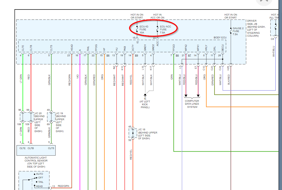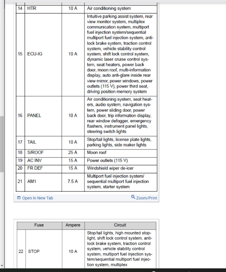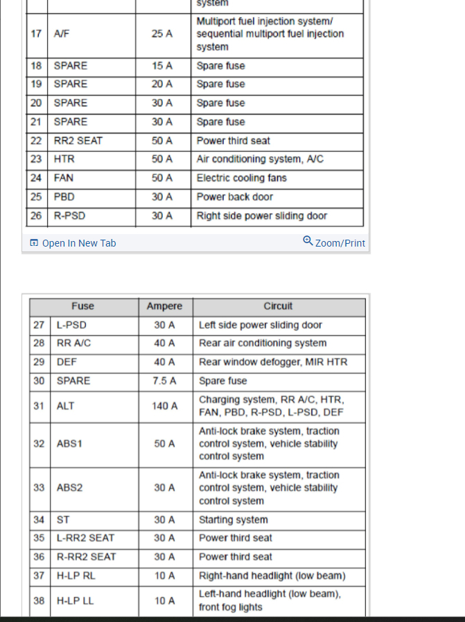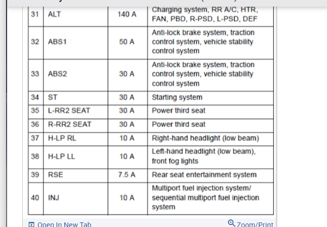 Two things finally. One, I'm still not sure that you are realizing that my engine compartment fuse block doesn't have the fuses listed #22-29 or #31-34. There is no place for them. That area is covered by a long, clear narrow see through plastic cover in which I can see two long silver rods that extend from side to side. So? Either those functions listed in the owners manual were either rerouted elsewhere or somehow were not needed for my vehicle.