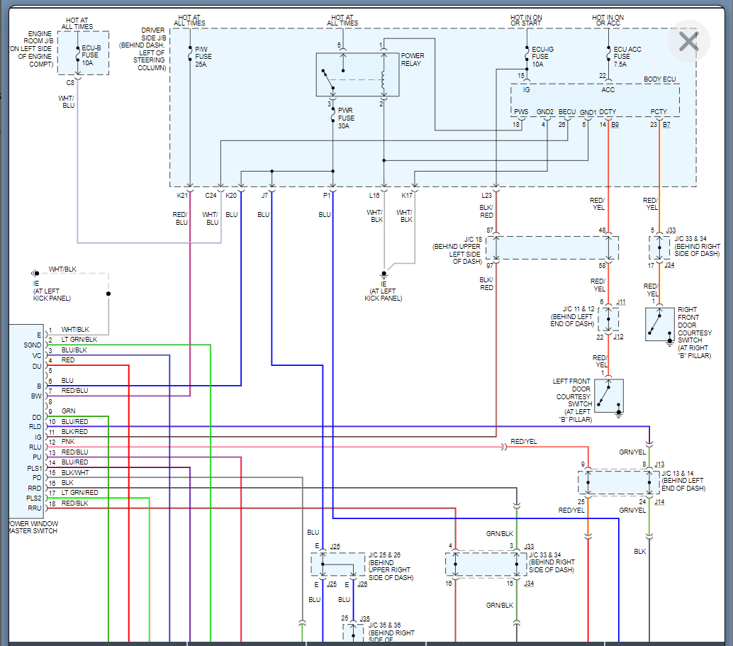 So what I would suggest is we start with the power window issue. Basically I would remove the door panel and check power at the motor and then work backwards through the system to find where the issue is.