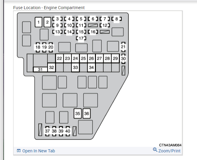 2. Where would the missing fuses in the engine compartment fuse block go to? The functions they protect are relevant functions listed to those missing fuse sections (22-29, 31-34).