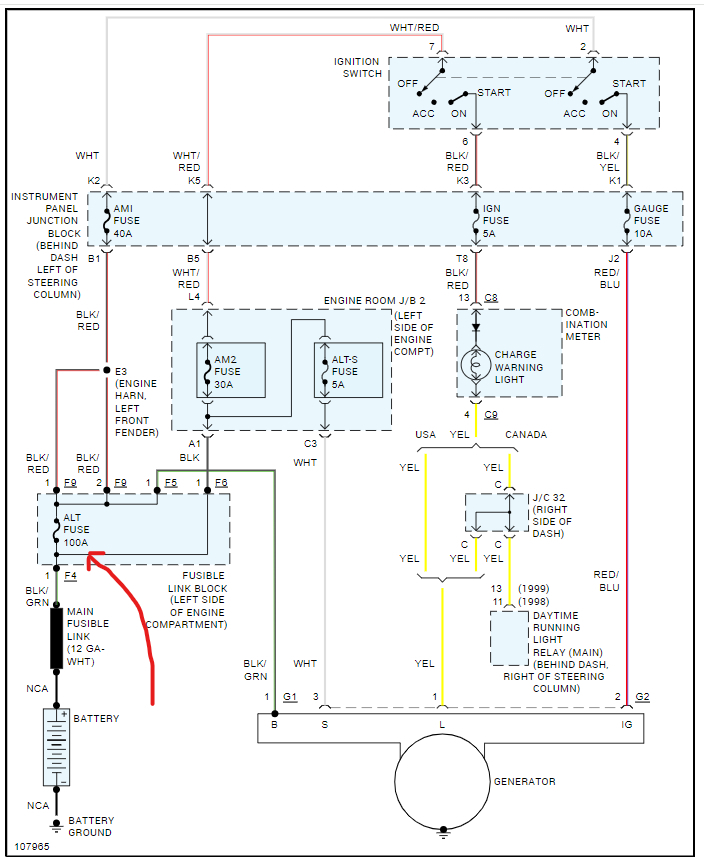 Hey guys, hope you all are doing well. The problem with this car is just a little bit of how what is going on happened. My son's girlfriend had this car, and it was leaking oil terribly, so I took on the task of changing her oil pump gasket for her. Got everything off, the timing belt, harmonic balance, and the like. Got everything put back on but when I attached the battery, I'd forgotten to attach the connection to the alternator (not the multiport connection on the back that you insert and has several wires, but the one that goes on top of the alternator and is screwed down). Well, that connection just happened to be touching the heat shield and when I connected the battery it arced for a split second before I pulled the battery terminal back off. That being said I now have no odometer, no tail lights, no brake lights, no dome light, no windshield wipers, no heater blower motor, no radio, no power locks, no power windows and no power to the OBD port (I'd wanted to scan the system to see if there are any codes and the scanner doesn't power, so no power from the OBD port). I do have front and rear hazard lights, headlights, and when I insert the key, I have the open door chime that work and the little open door light on the instrument panel lights up along with the little airbag light on the instrument panel, and the car does start just fine.
