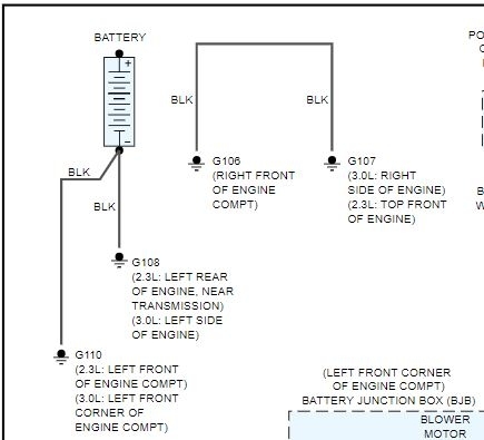 I have attached a partial schematic which indicates the locations of the battery grounds. Check them for condition, corrosion, and if they are tight.