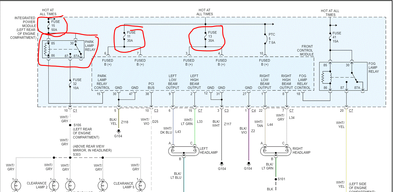 The first thing I need to confirm is the fuses are all good. I attached a pic below that shows the fuses I need you to check for me. In addition to just checking them, make sure there is power in and out of the fuse.