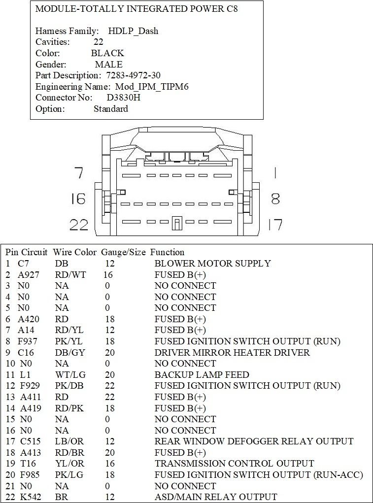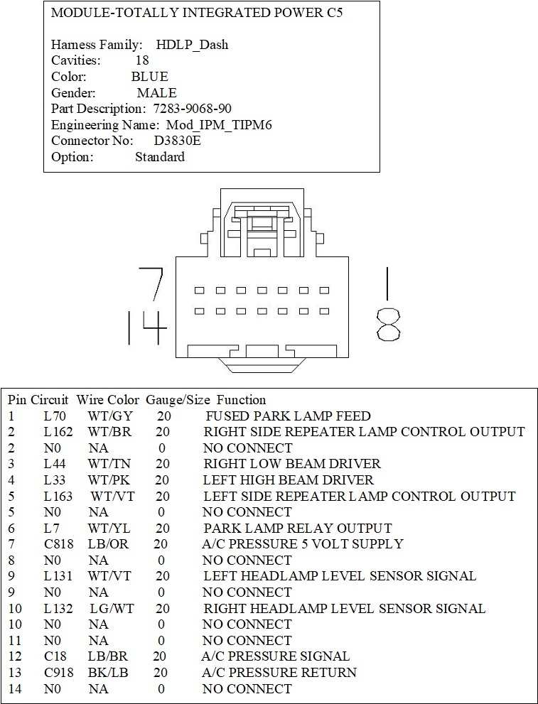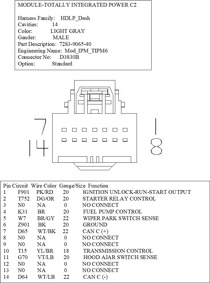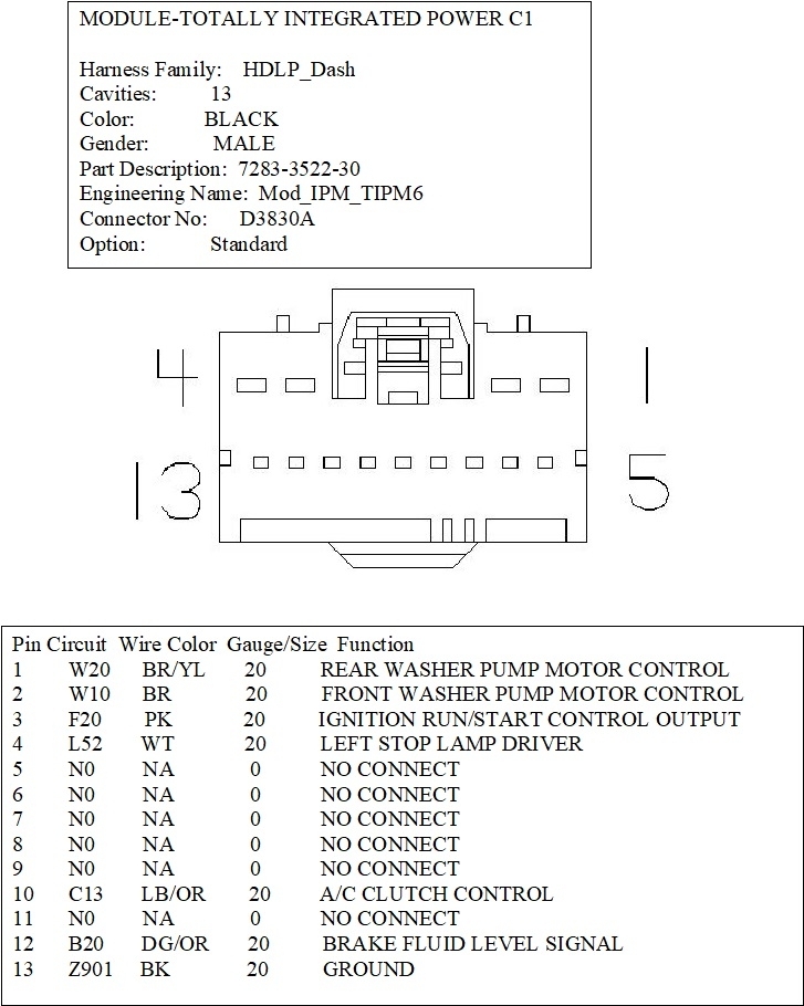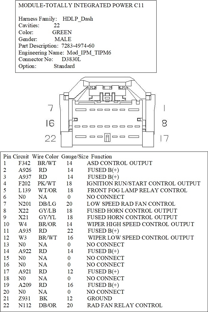 I would like to get the wiring diagram and pinouts for the "B" connector in the fuse box/TIPM.