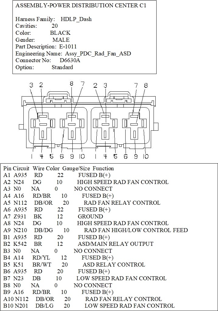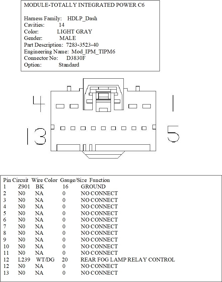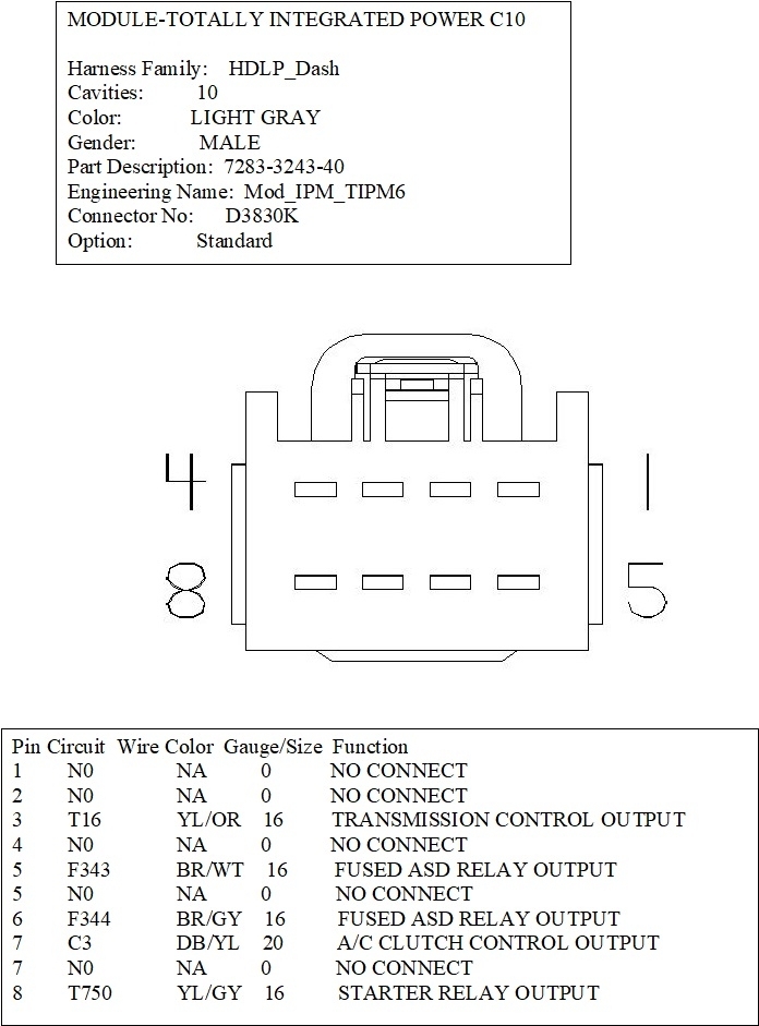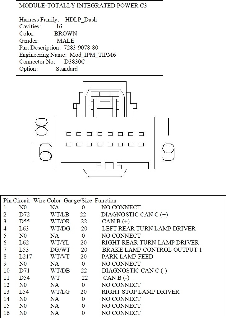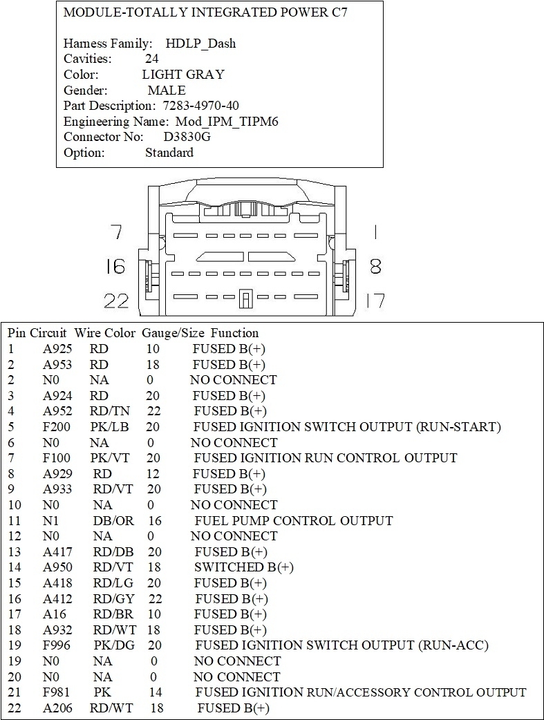 I would like to get the wiring diagram and pinouts for the "B" connector in the fuse box/TIPM.