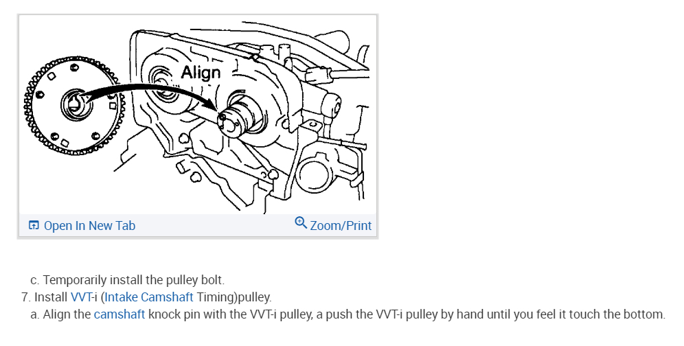 a. Align the camshaft knock pin with the groove on the pulley, and slide on the timing pulley.