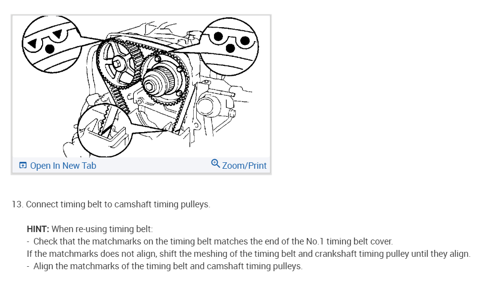 - Check that the matchmarks on the timing belt matches the end of the No.1 timing belt cover.