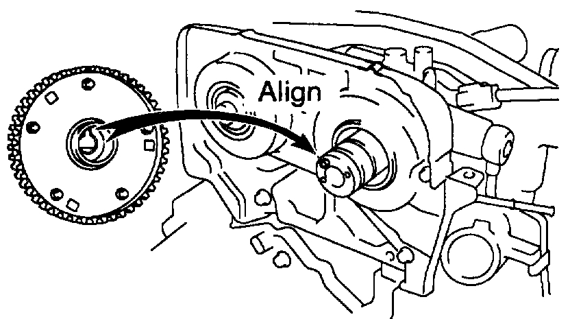 - Align the matchmarks of the timing belt and camshaft timing pulleys.