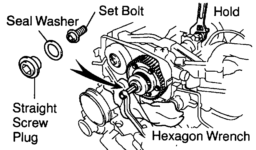 Using a 14 mm hexagon wrench, install the straight screw plug with the seal washer to the set bolt.