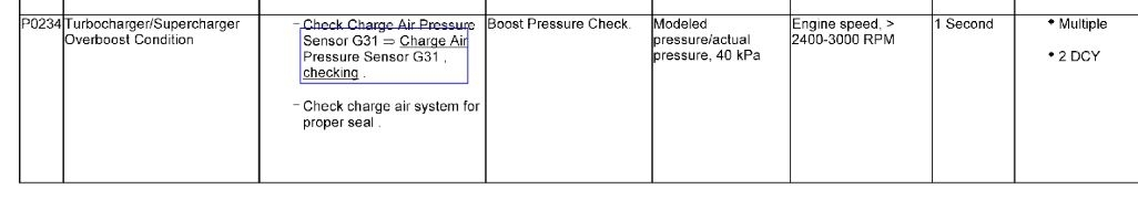 Honestly, either there is an over boost issue or the charge air pressure sensor is bad. I attached a diagnostic flow chart, but it will require specialized tooling. See picture 1.